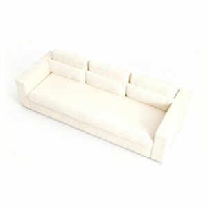 Low, modern silhouette with wide track arms and relaxed cushions.
