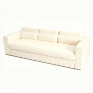 The Haven Chaise Sofa is designed as a low, generous platform for everyday living, deep enough to stretch out, tailored enough to anchor a room. Clean, architectural lines frame sink-in cushions, with wide track arms that invite you to lean, stack pillows, and stay put.